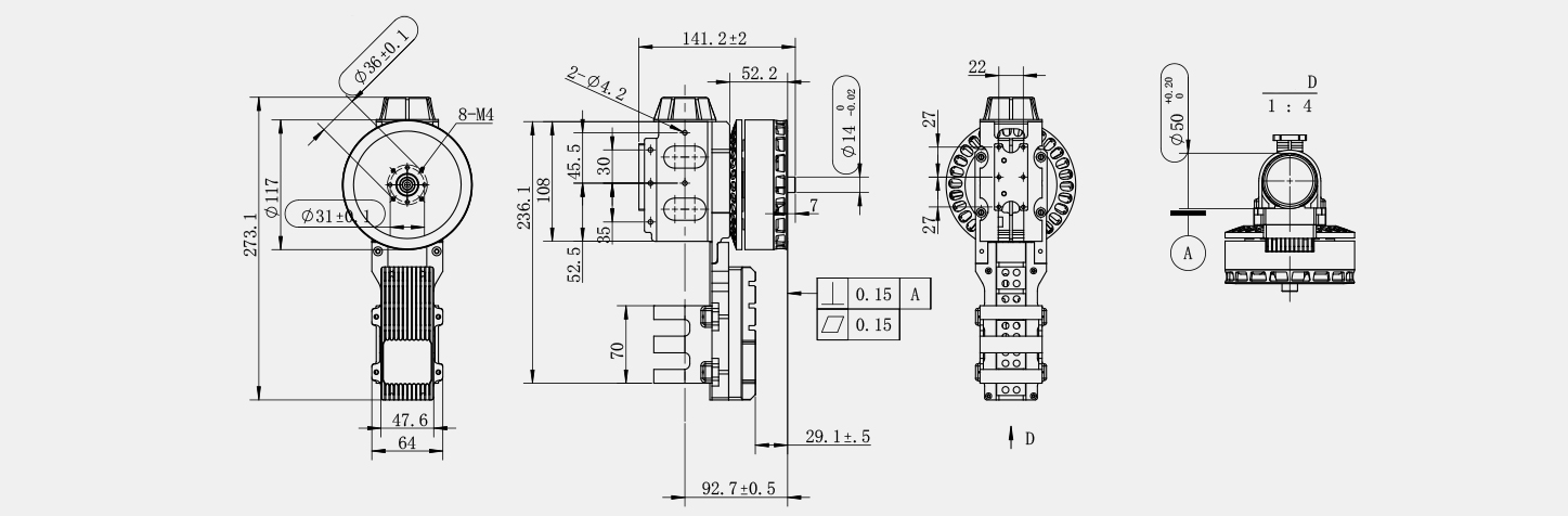 | 85 | 14S-18S | 37.5 | 15-18 | 2.85 | 146 | 50 | φ116*42.5 | φ108*2 | 8-M4*10 | 43" |